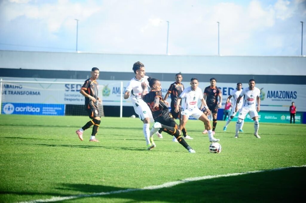 A partida no Carlos Zamith foi um retrato clássico da máxima do futebol: quem não faz, leva. O Manauara começou melhor, pressionando desde os minutos iniciais e criando diversas oportunidades. Ao todo, o Robô finalizou 17 vezes, sendo sete no alvo, mas parou na falta de pontaria e na grande atuação do goleiro Eugênio.