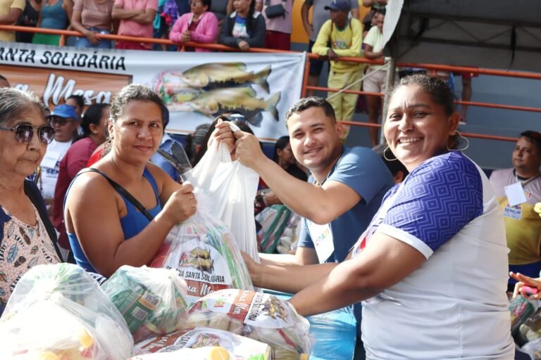 Ao todo, foram distribuídas cerca de 40 toneladas de tambaqui, além de mais de 10 mil kits complementares com itens como arroz, macarrão, sal e farinha, garantindo alimento à mesa de famílias em situação de vulnerabilidade social durante o período religioso.