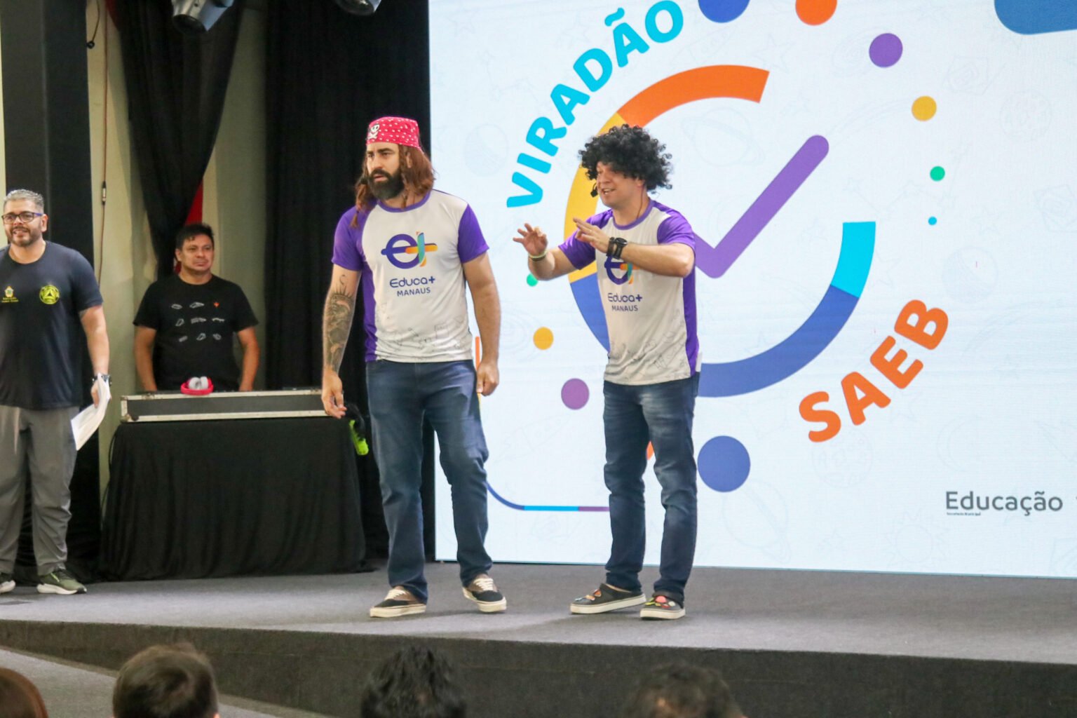O auditório da Secretaria Municipal de Educação (Semed), na avenida Maceió, zona Centro-Sul de Manaus, foi tomado por muita animação nesta quarta-feira (8/10), durante a abertura do “Viradão Saeb – Aulas E+ Show” 2025, promovido pela Prefeitura de Manaus. Cerca de 500 alunos do 5º ano do ensino fundamental participaram, nos turnos da manhã e tarde, de uma programação repleta de atividades dinâmicas de Matemática e Língua Portuguesa, voltadas ao reforço da aprendizagem e à preparação para as avaliações do Sistema de Avaliação da Educação Básica (Saeb).